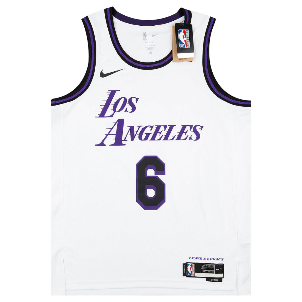 A Camisa Regata City Edition 2022-2023 do Los Angeles Lakers, nas cores branco, roxo e preto, traz um design único e simples, simbolizando a união de Los Angeles. Este uniforme é uma tela em branco, permitindo que as histórias dos “Changemakers” de LA brilhem, sem distrações. 🌇